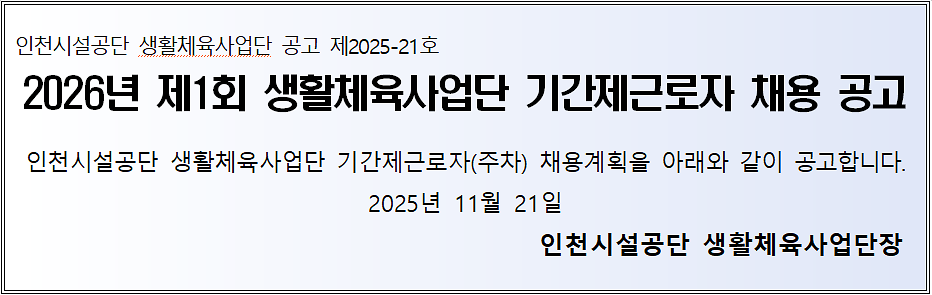 2026년 생활체육사업단(삼산월드체육관) 기간제근로자(주차) 채용 공고