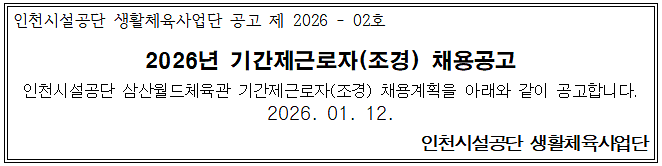 2026년 삼산월드체육관 기간제근로자(조경) 채용공고