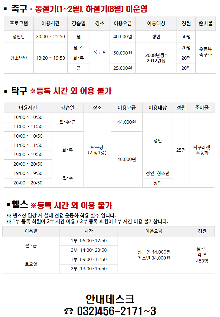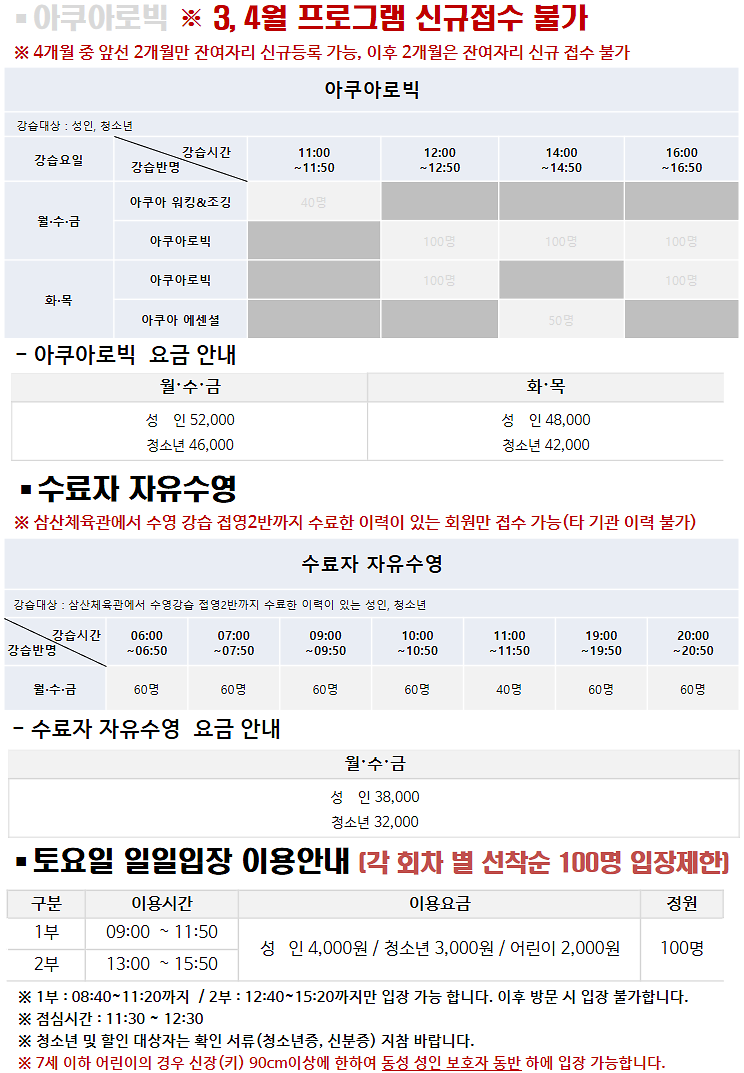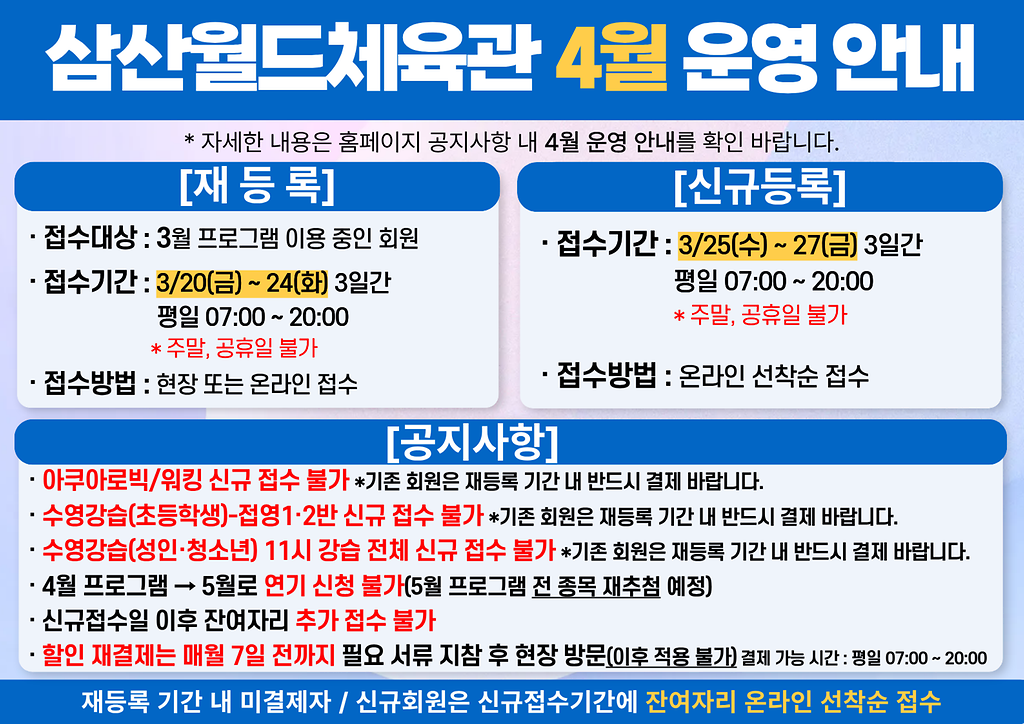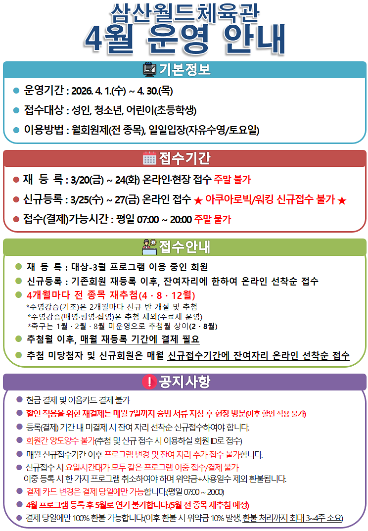 삼산월드체육관 4월 운영 안내