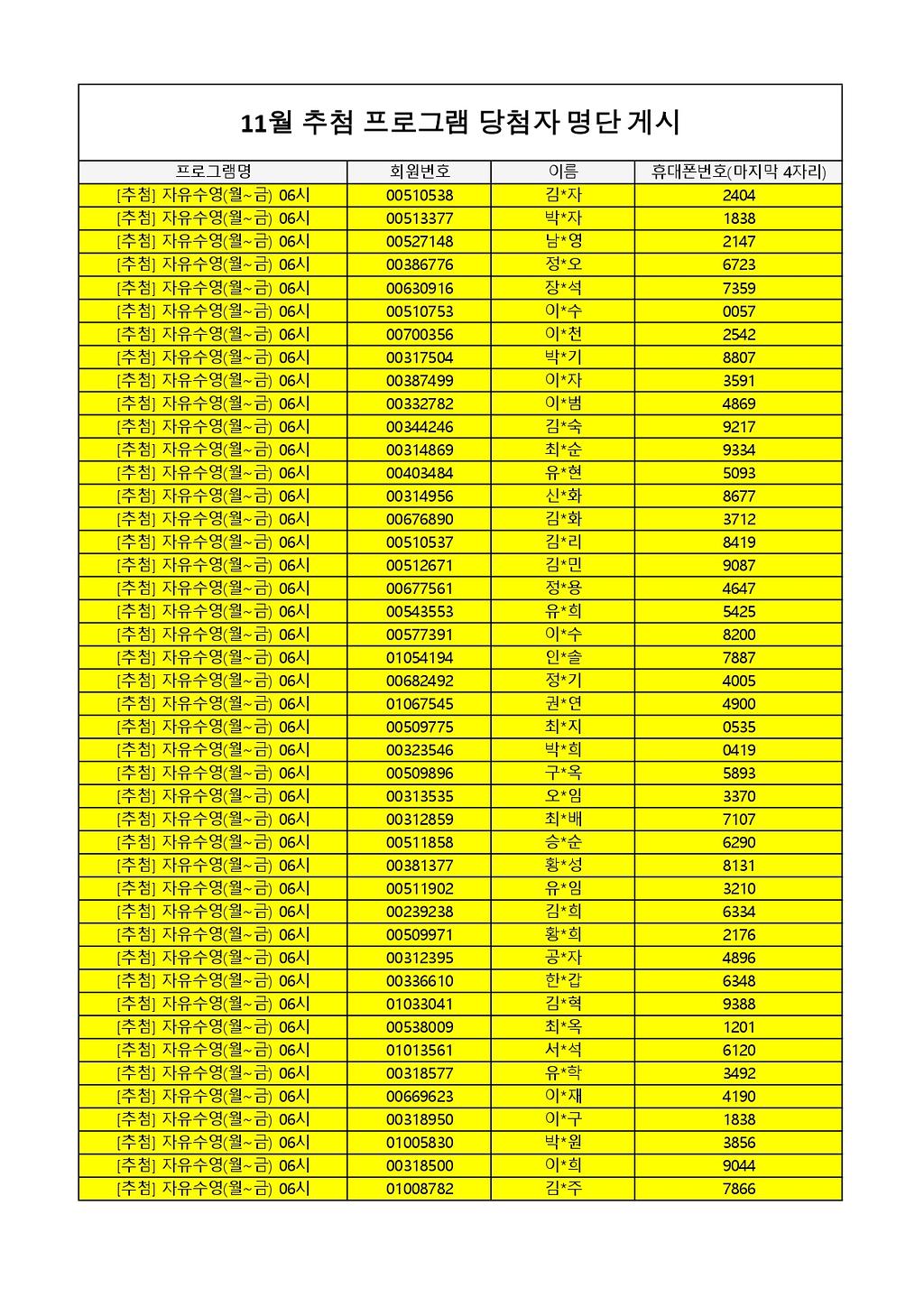 2025년 11월 추첨 프로그램 당첨자 현황 게시