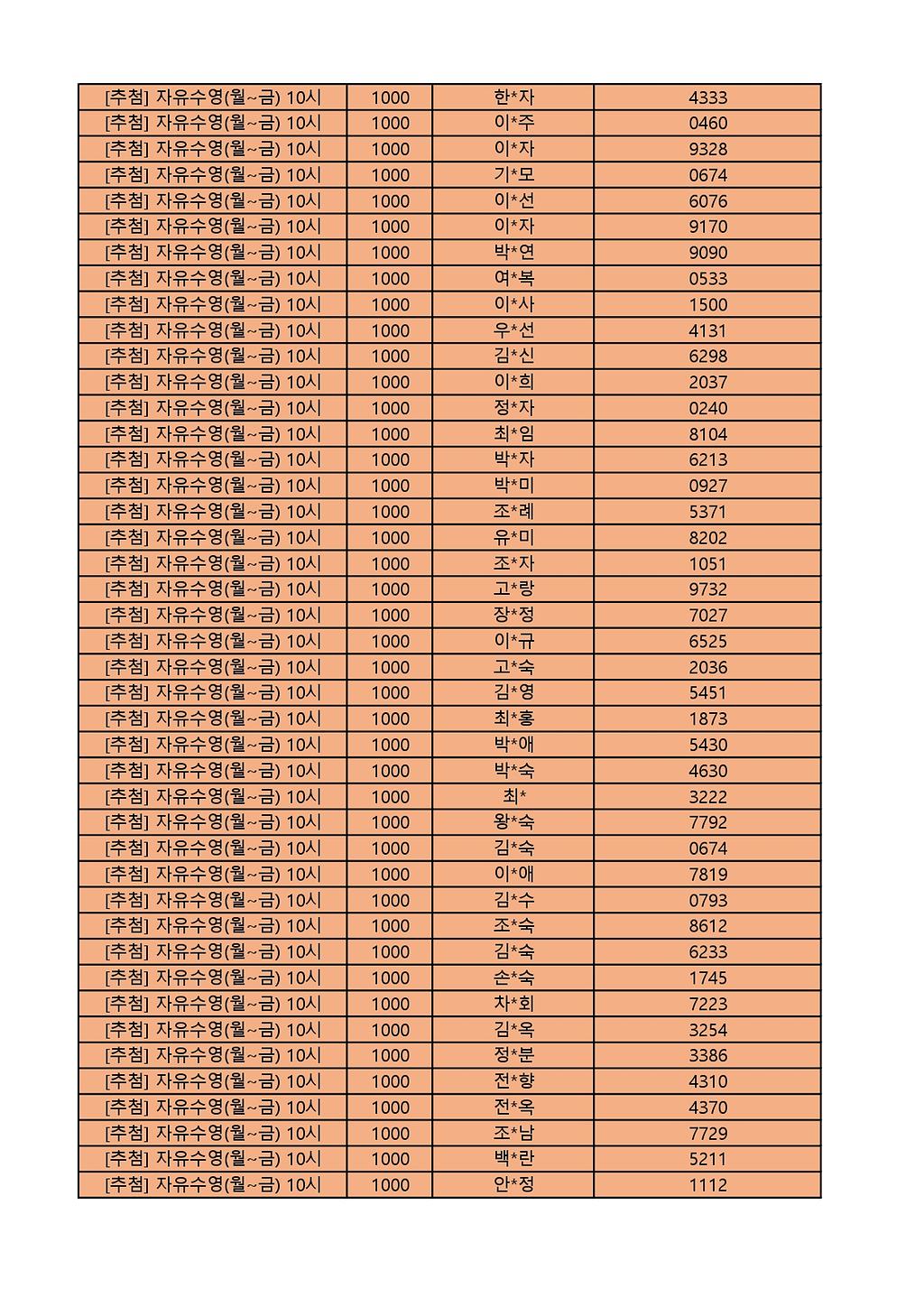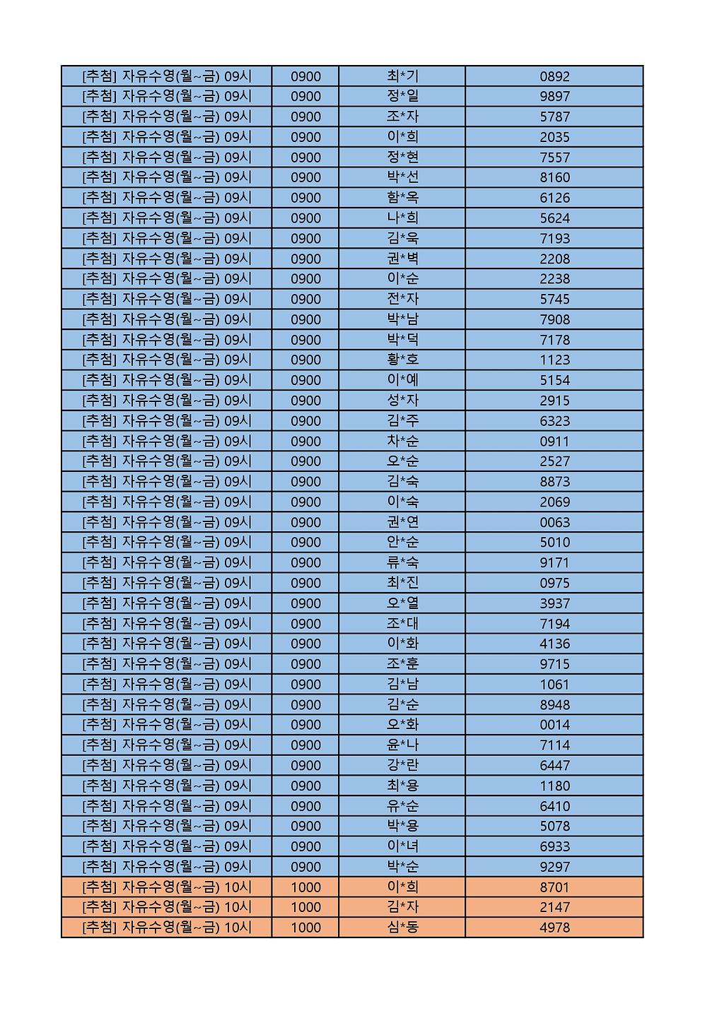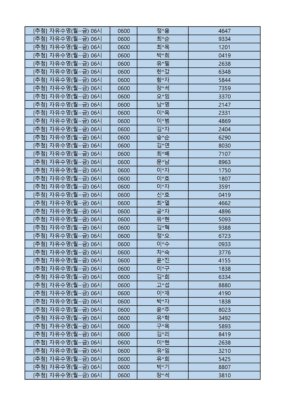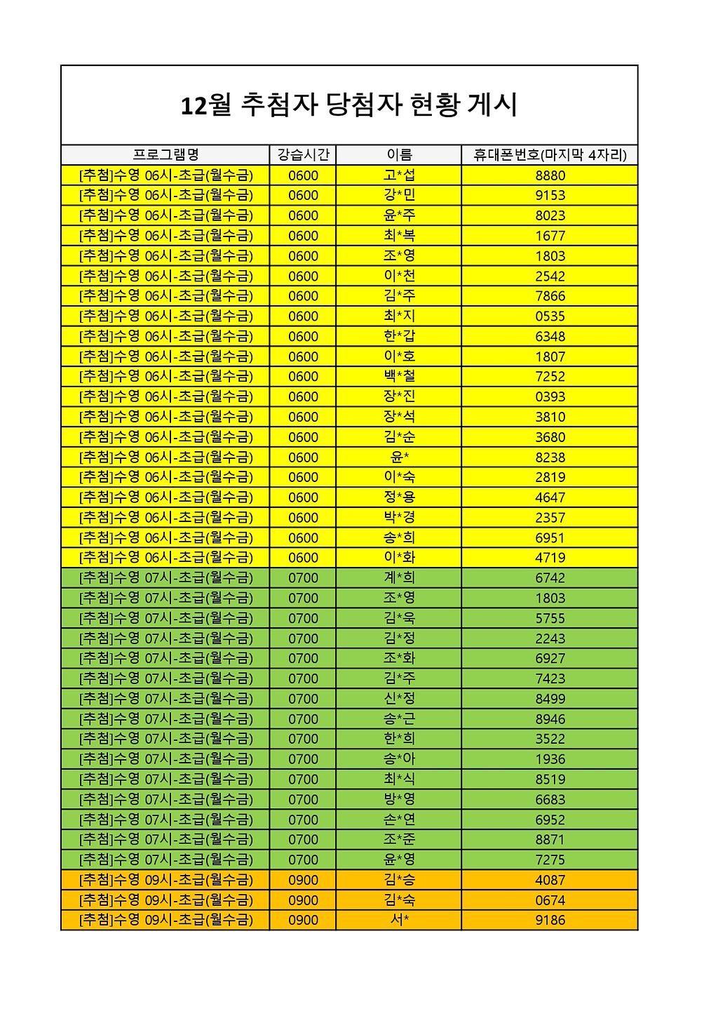 2025년 12월 생활체육프로그램 당첨자 명단 게시
