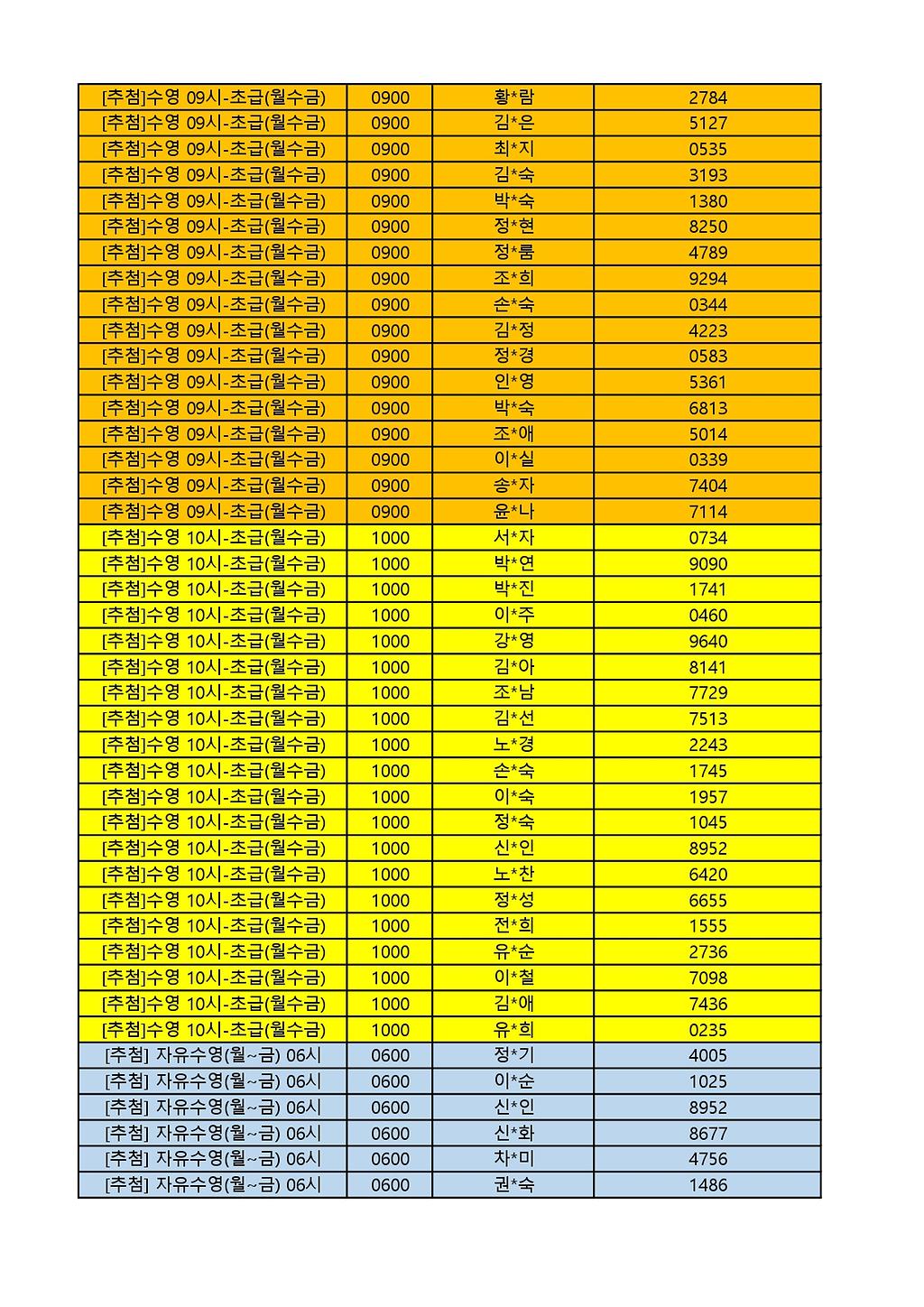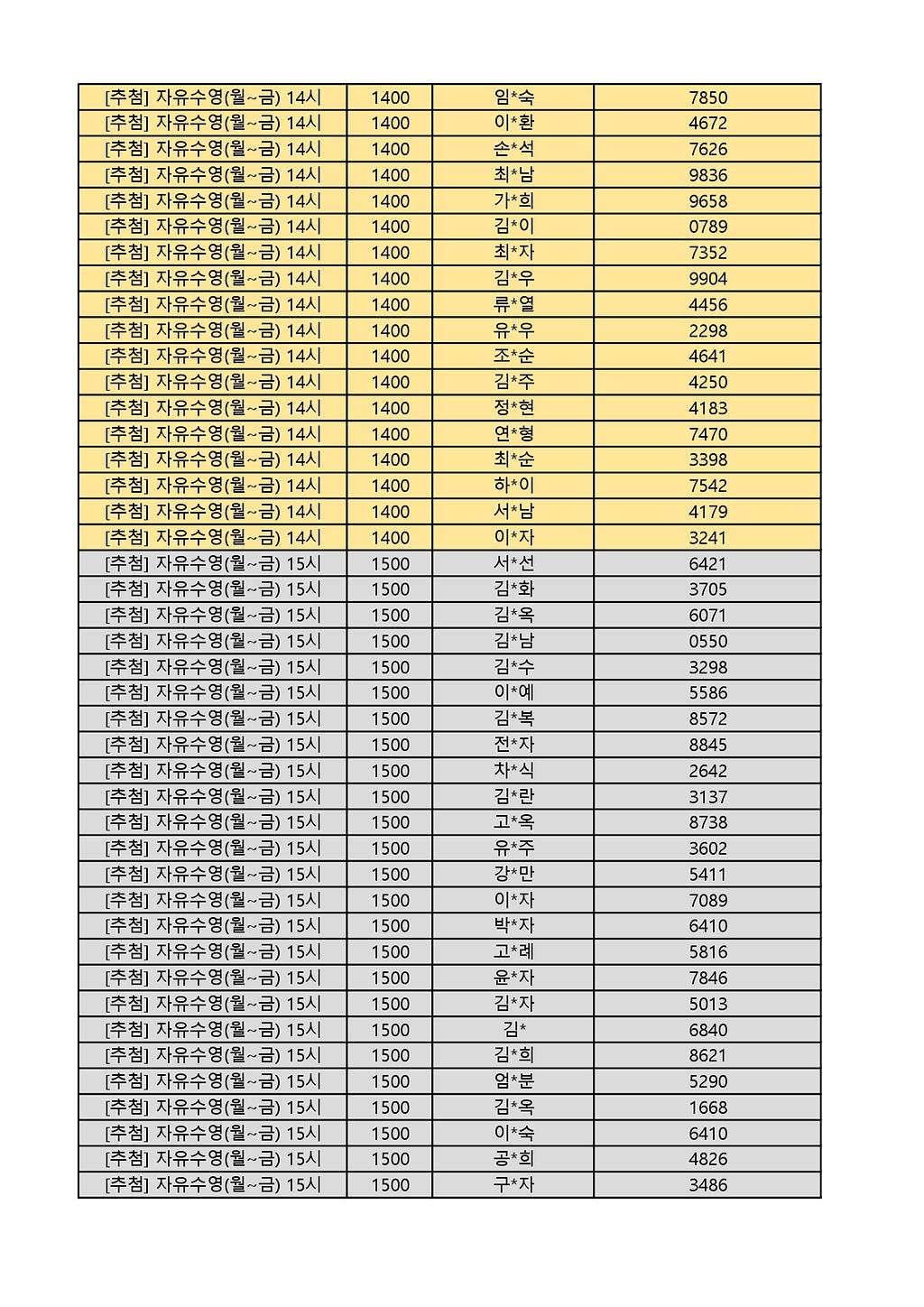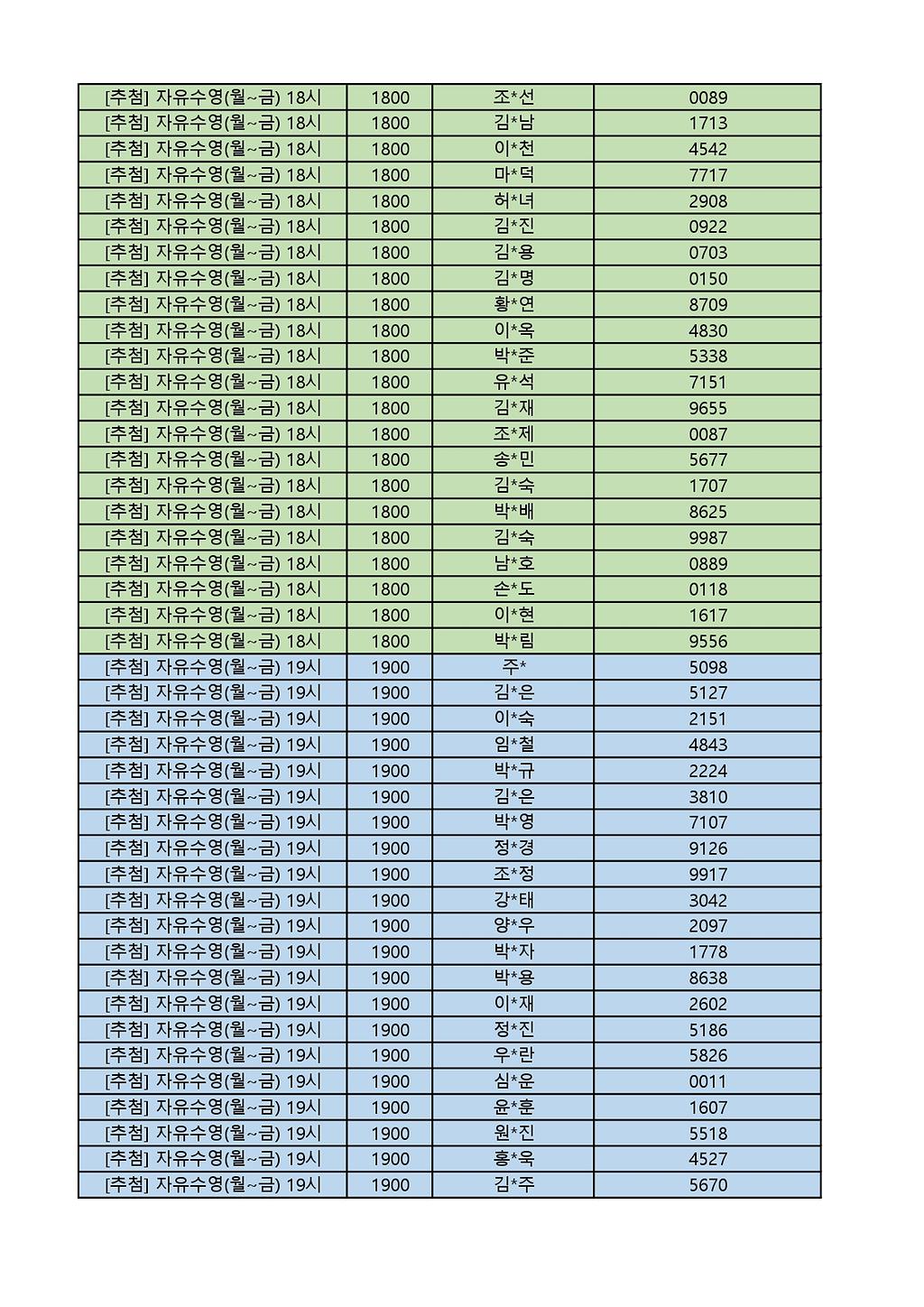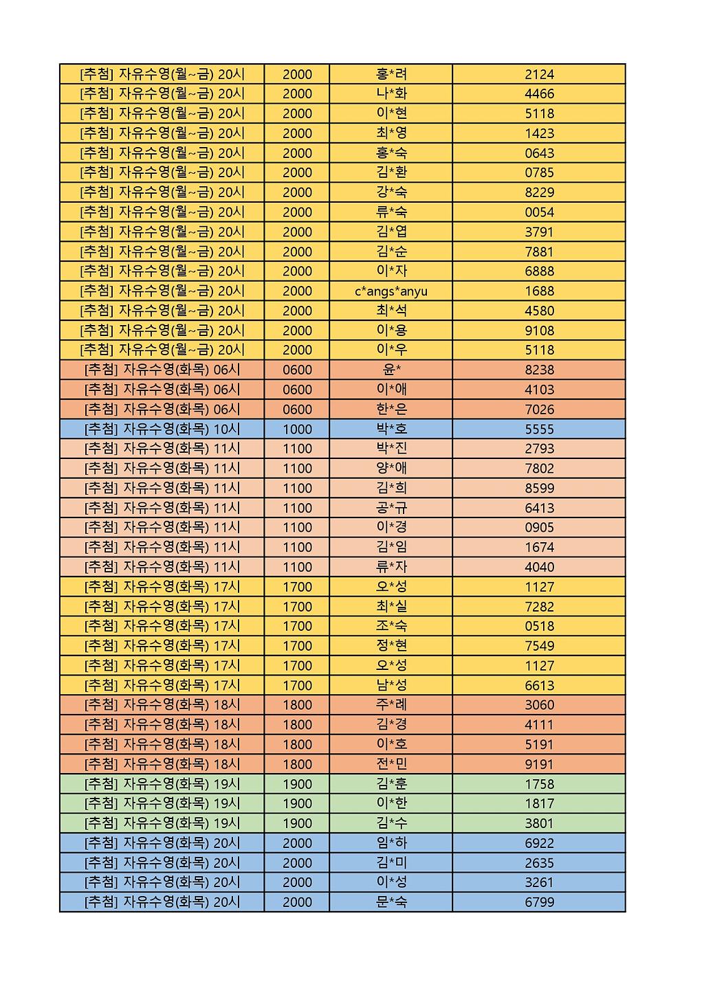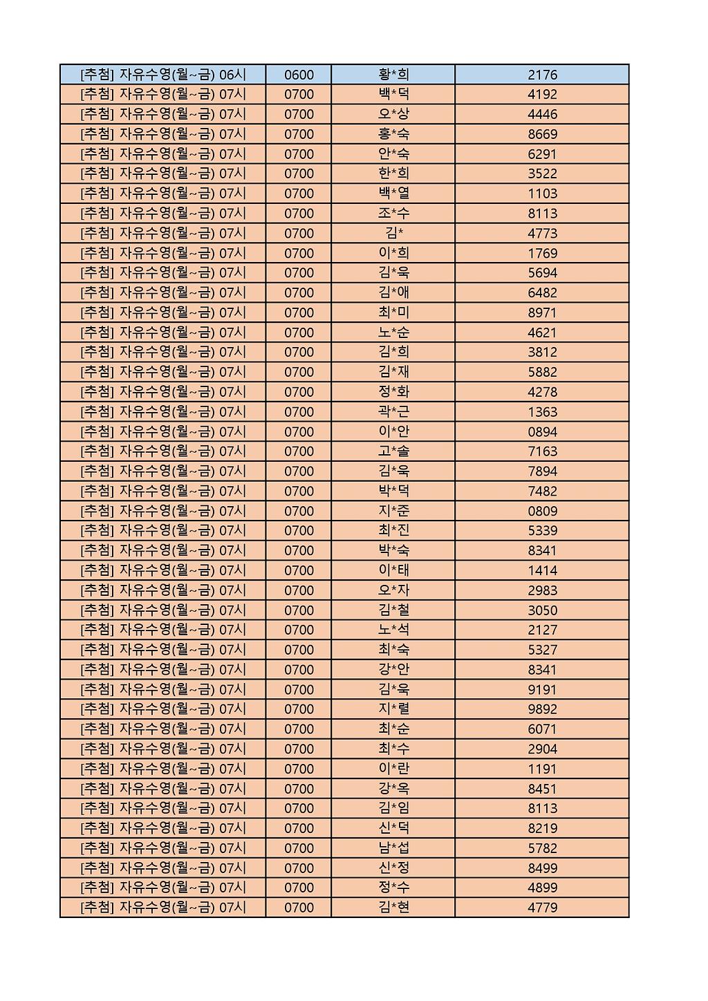 2025년 12월 생활체육프로그램 당첨자 명단 게시