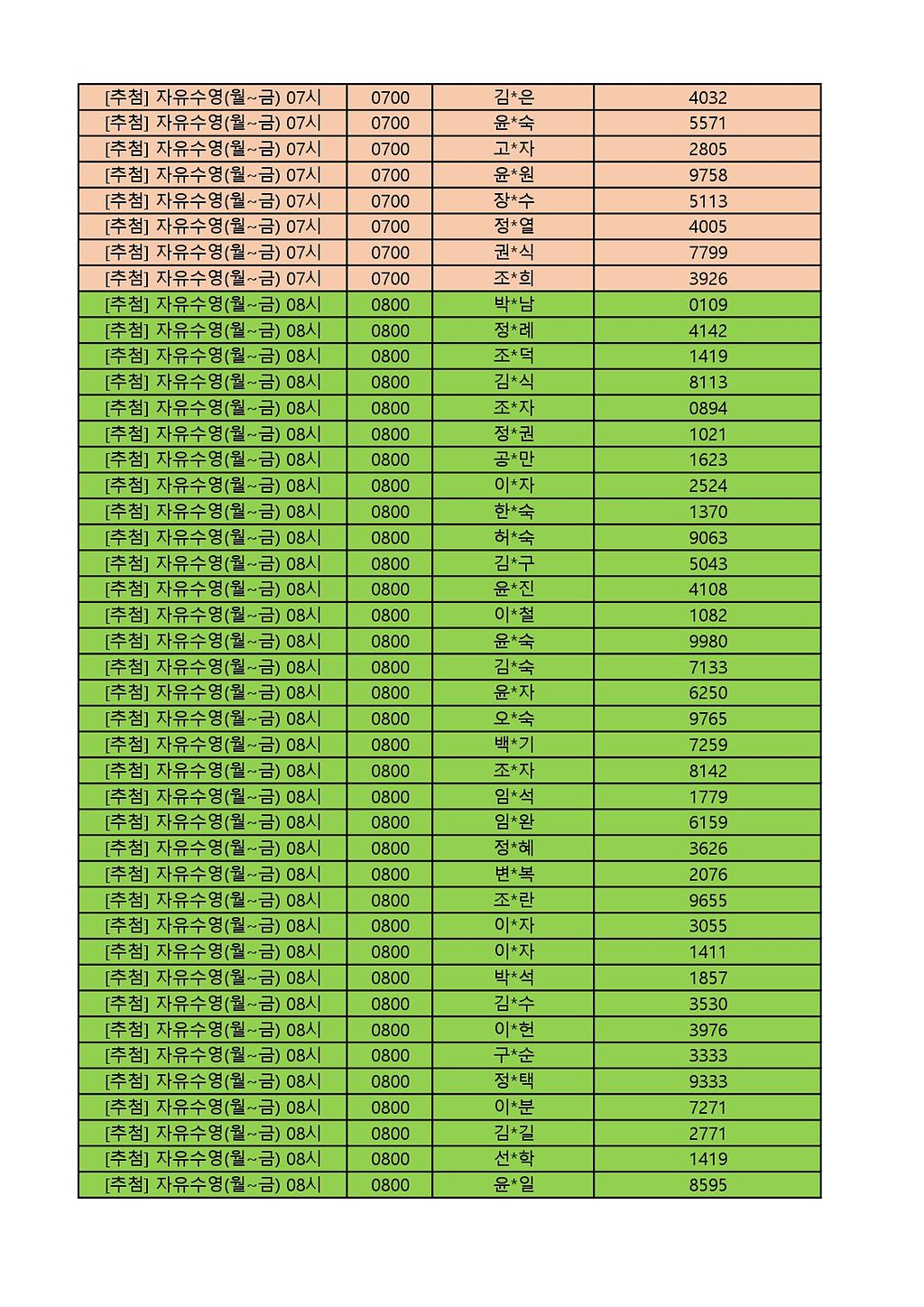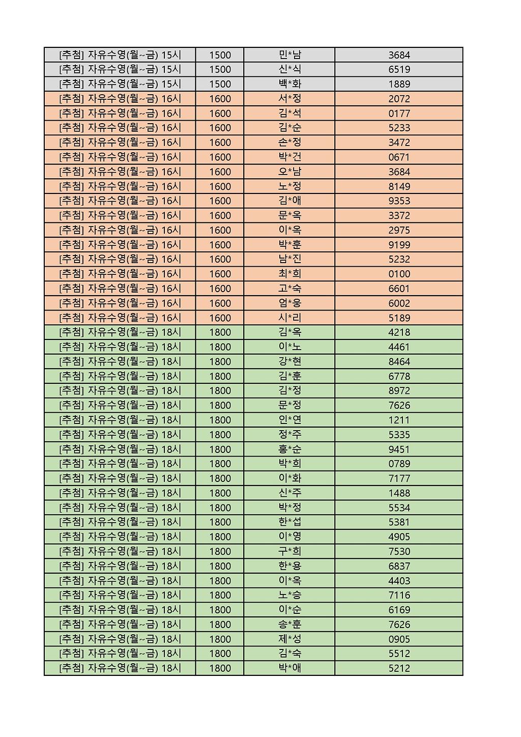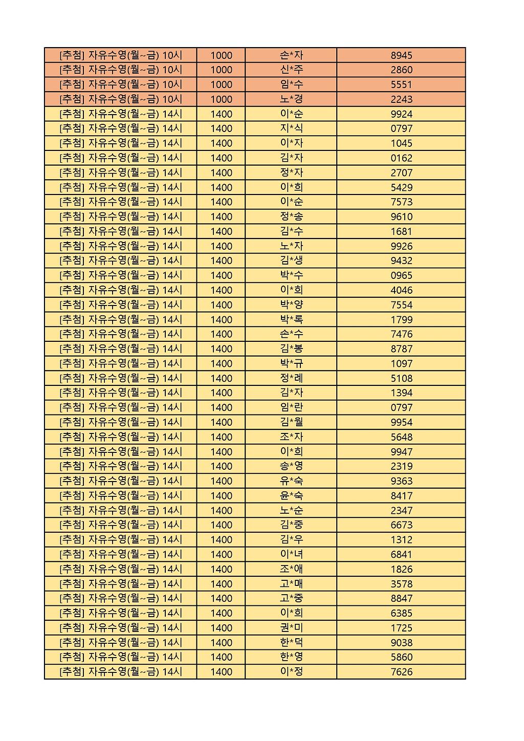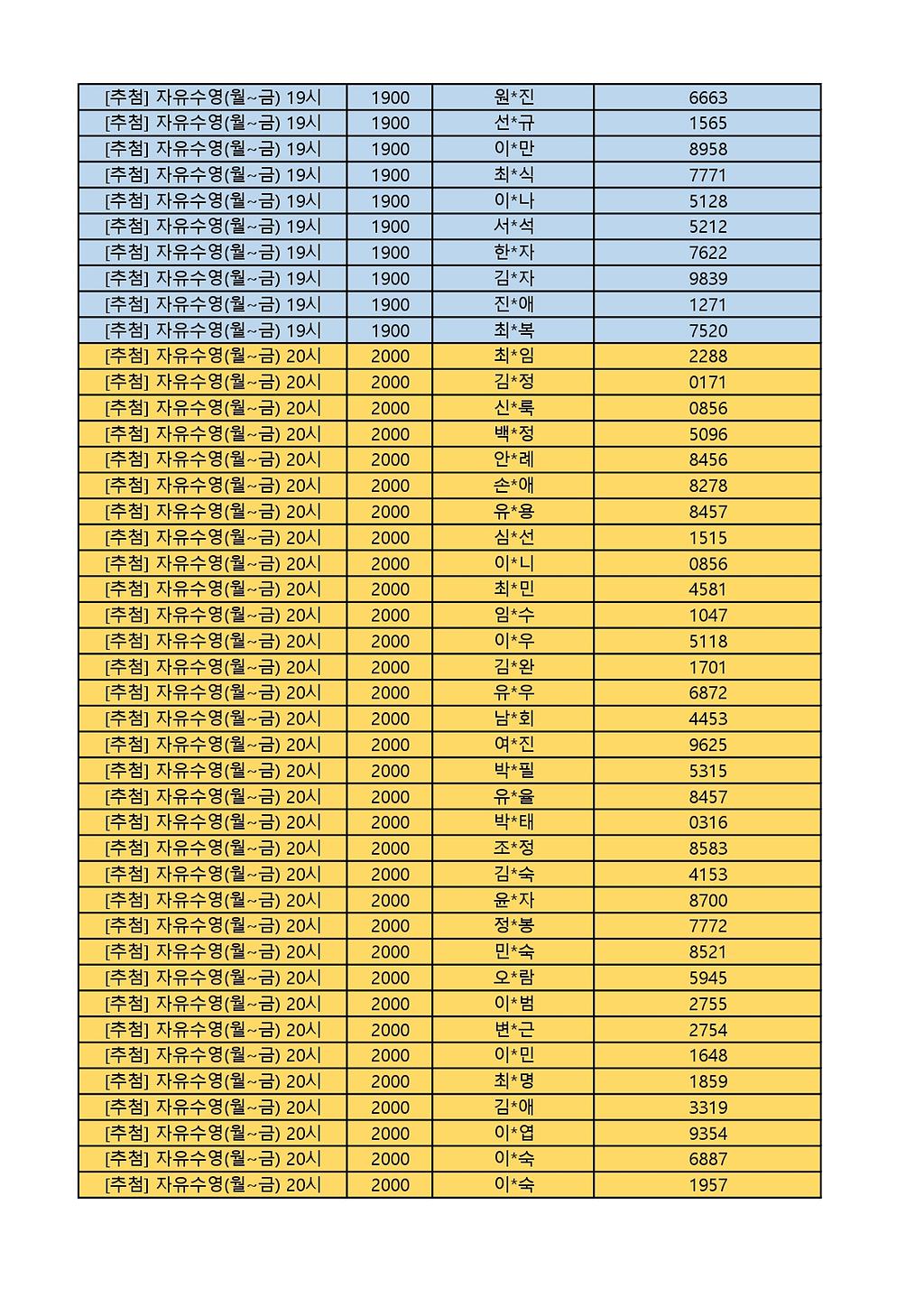2025년 12월 생활체육프로그램 당첨자 명단 게시