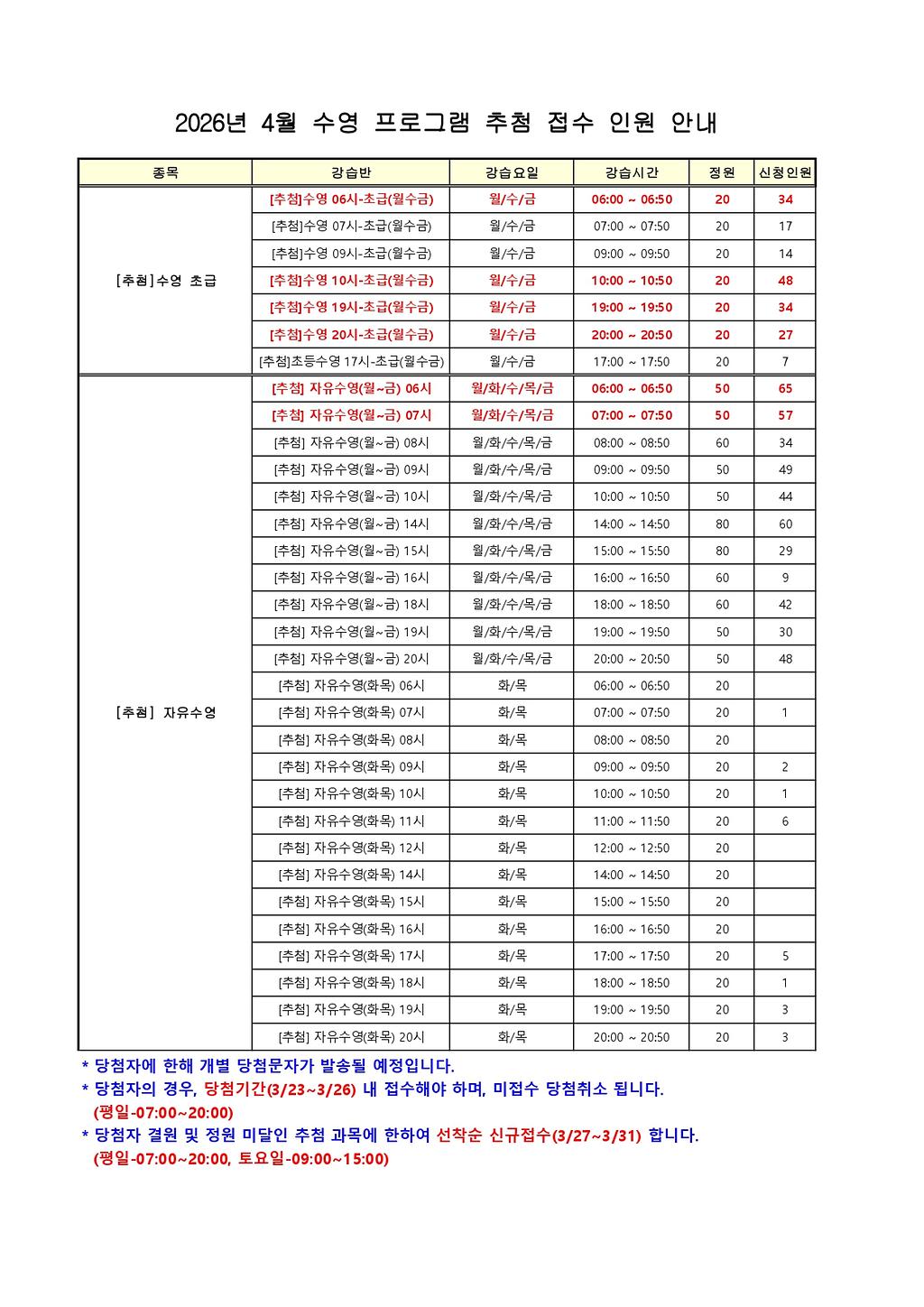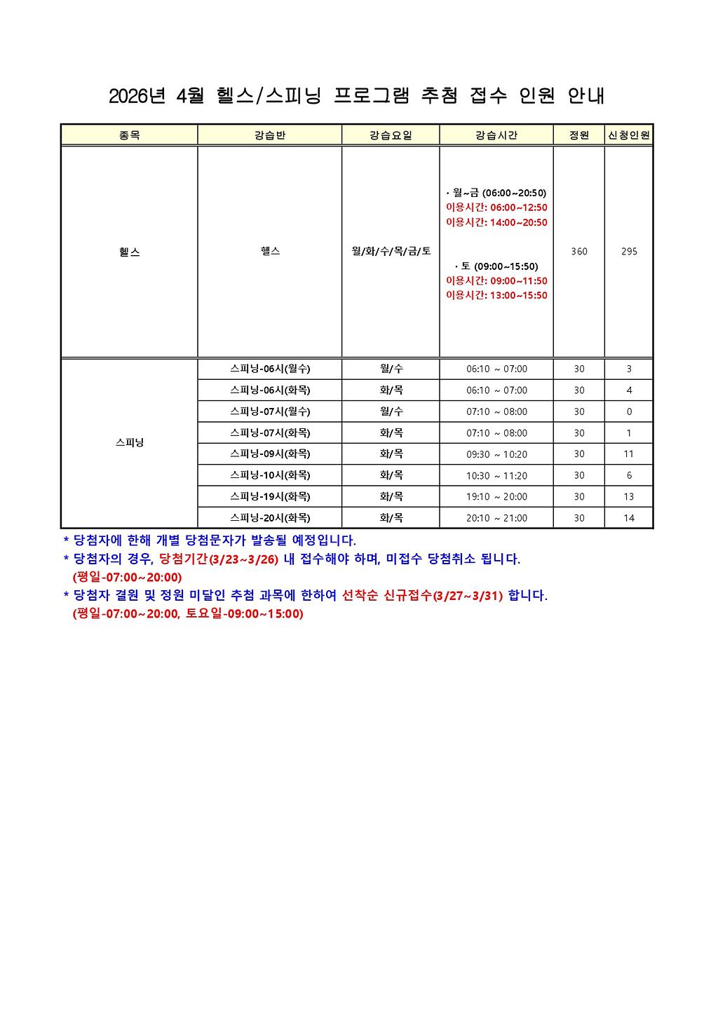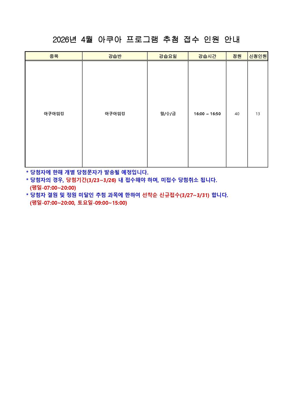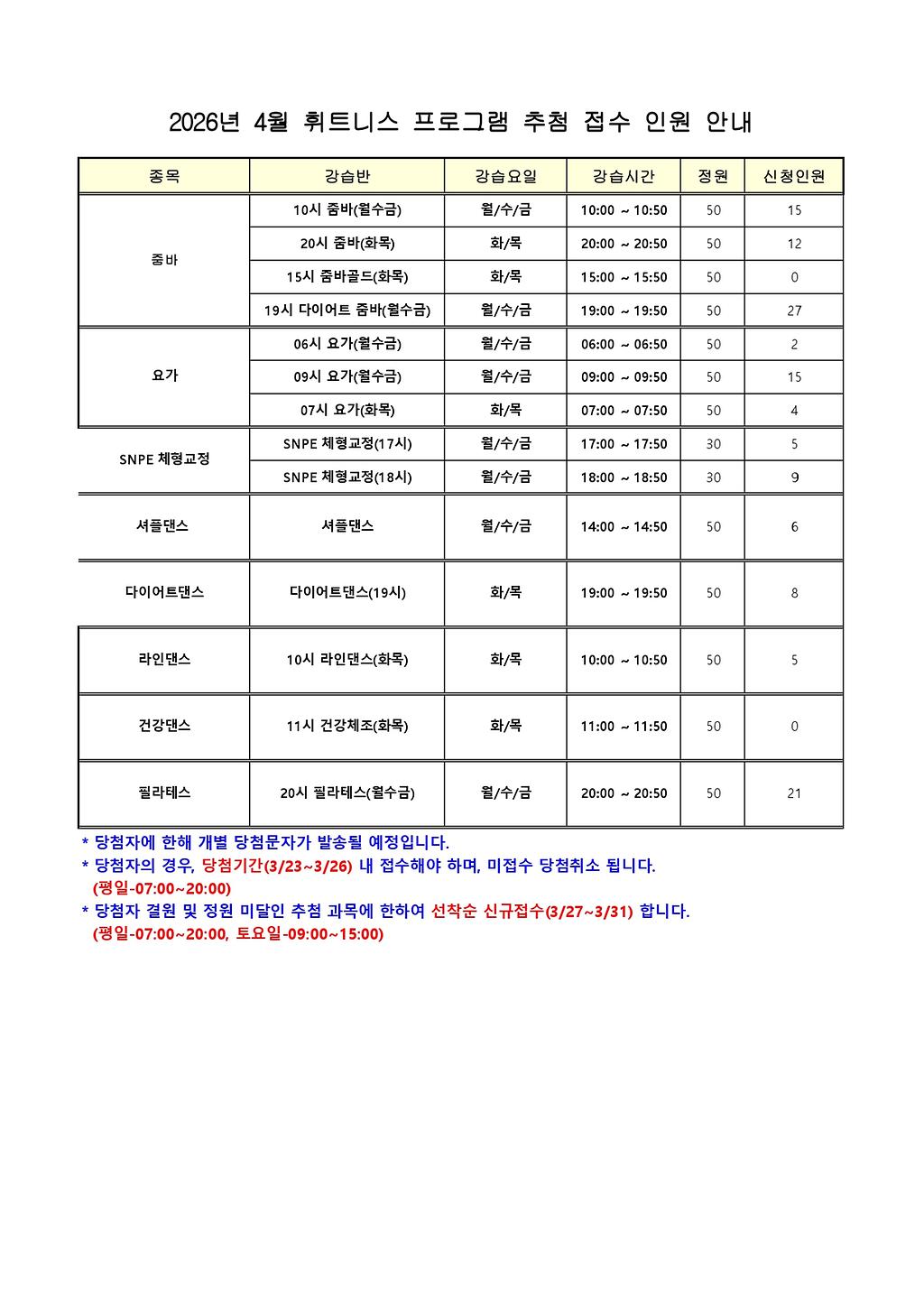 2026년도 4월 추첨 프로그램 접수 현황 게시
