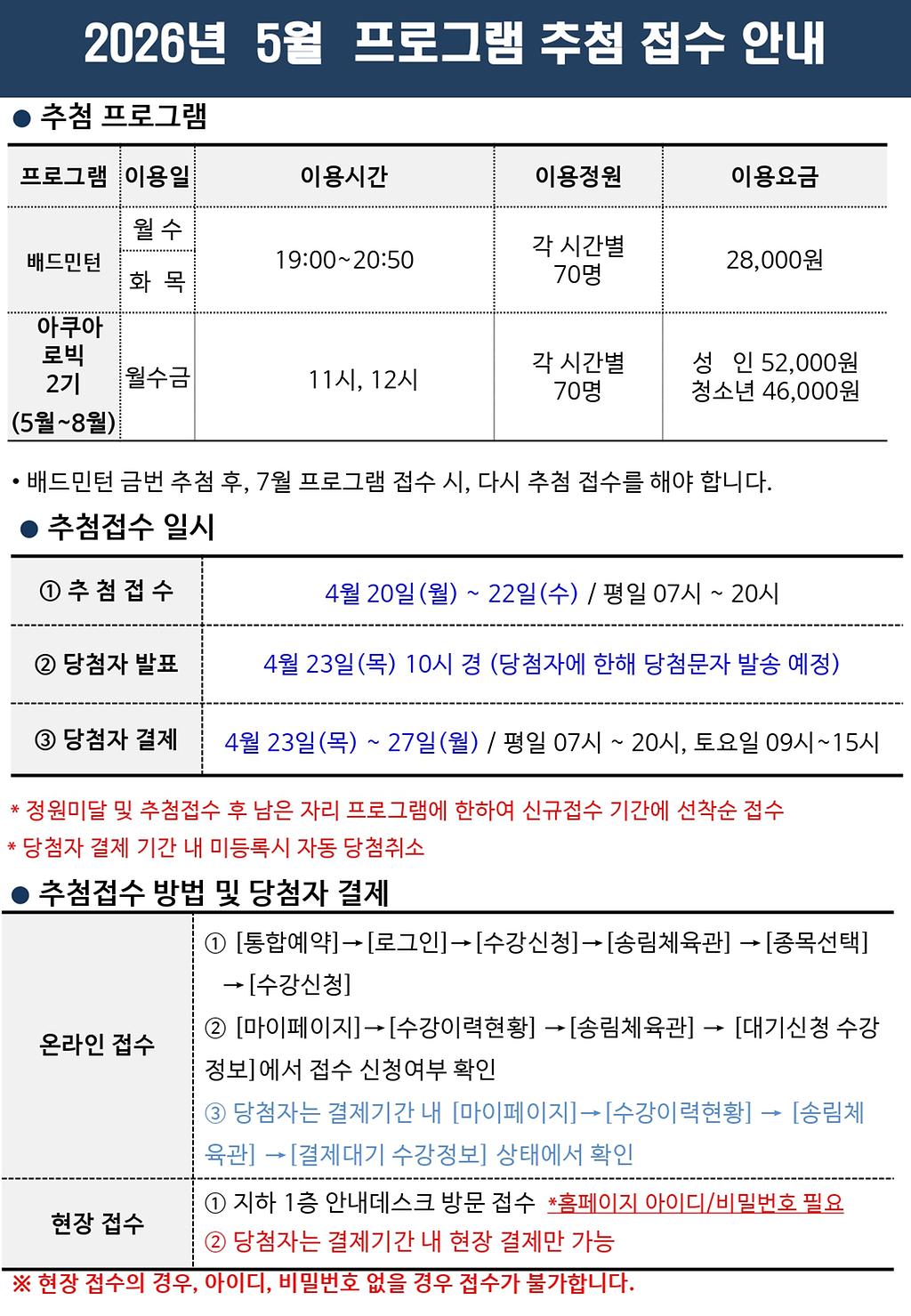2026년 5월 생활체육프로그램 운영 및 접수 안내